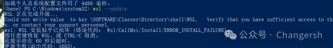wsl的update報(bào)錯(cuò):1603