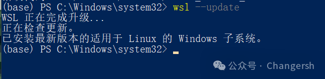 安裝完成后,查看wsl版本