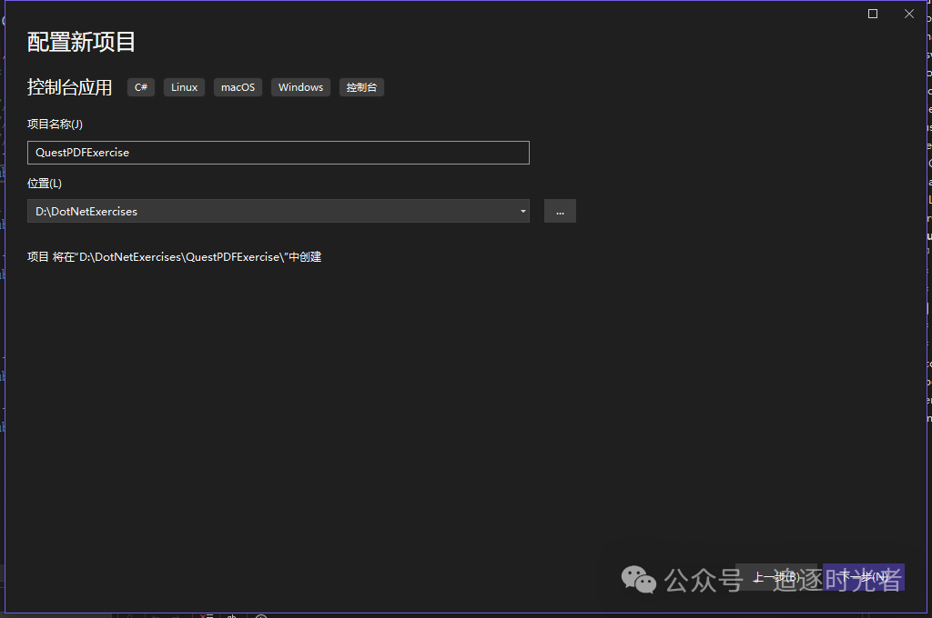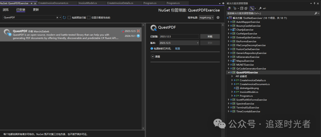 創(chuàng)建一個(gè)控制臺應(yīng)用 創(chuàng)建一個(gè)名為QuestPDFExercise