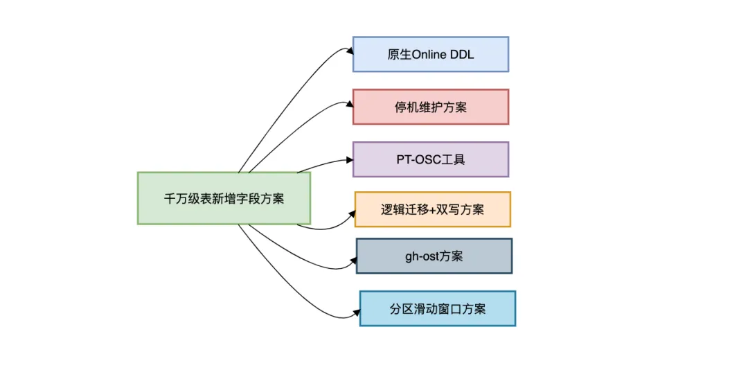 以下是針對(duì)千萬(wàn)級(jí)MySQL表新增字段的6種方案的對(duì)比。