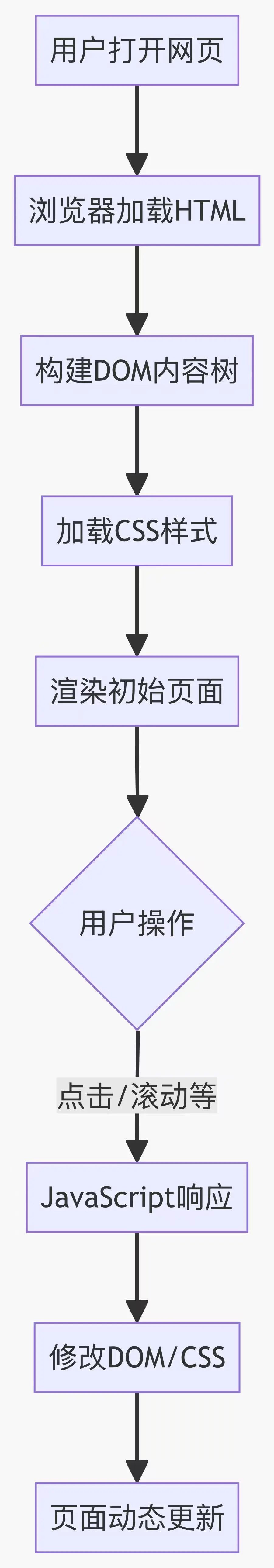 聯動效果說明: 1. HTML 創(chuàng)建了一個帶id的<div>方塊 2. CSS 定義了方塊的初始樣式(.box)和點擊后的樣式(.active) 3. JavaScript 實現: ? 監(jiān)聽方塊點擊事件 ? 動態(tài)切換CSS類名(添加/刪除.active) → 結果:點擊方塊時,它會從藍色變?yōu)榧t色并旋轉45度 現代網頁運作流程: ?? 關鍵認知: 1. HTML是地基:沒有它,CSS/JS無處依附 2. CSS是皮膚:改變它只影響視覺效果,不改變核心功能 3. JS是神經: ? 可操作HTML元素(增刪改查DOM) ? 可動態(tài)修改CSS樣式(如點擊變色) ? 可處理數據/網絡請求等復雜邏輯 ? 簡單公式:網頁 = HTML(內容) + CSS(美化) + JS(交互) 打開瀏覽器開發(fā)者工具(F12),在Elements/CSS/Console標簽間切換,你能直觀看到三者如何協同工作 結語: 本期深入地探討了JavaScript與HTML、CSS之間的區(qū)別,以及三者之間如何聯動;并且給出了簡易代碼和效果預覽。 相信經過此篇的學習,你對這三者之間的理解會有更加系統性的認識。 下篇我們會對DOM進行講解,它是什么?如何發(fā)揮作用? 閱讀原文:原文鏈接 該文章在 2025/8/1 16:36:22 編輯過 |