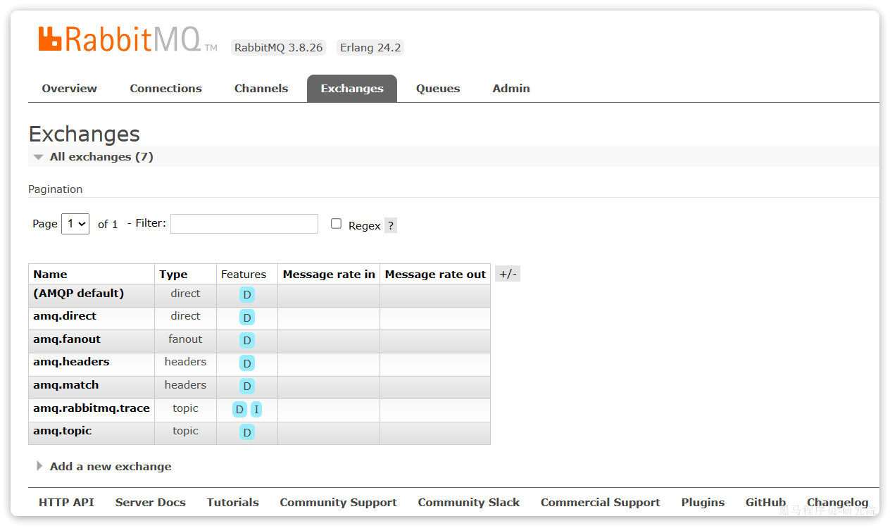 打開Exchanges選項(xiàng)卡,可以看到已經(jīng)存在很多交換機(jī):