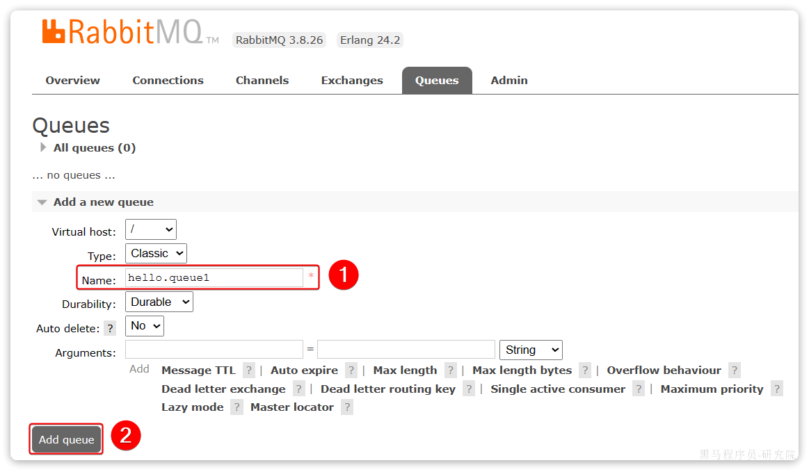 再以相同的方式,創(chuàng)建一個隊(duì)列,密碼為hello.queue2
