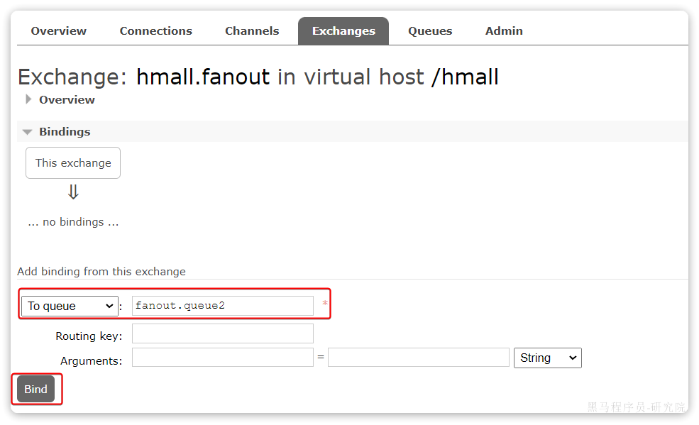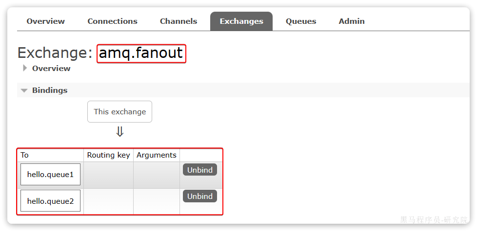 相同的方式,將hello.queue2也綁定到改交換機(jī)。