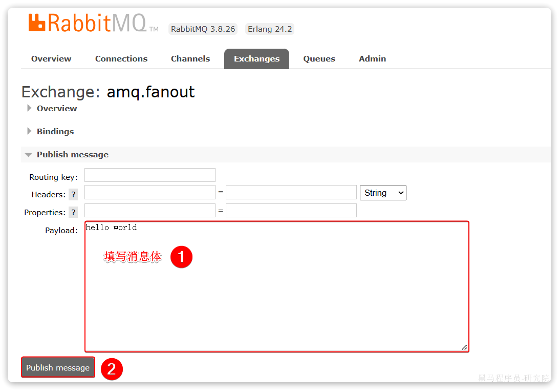 注意,這里我們先不要給這個隊(duì)列添加消費(fèi)者,我們要查看消息體的格式。