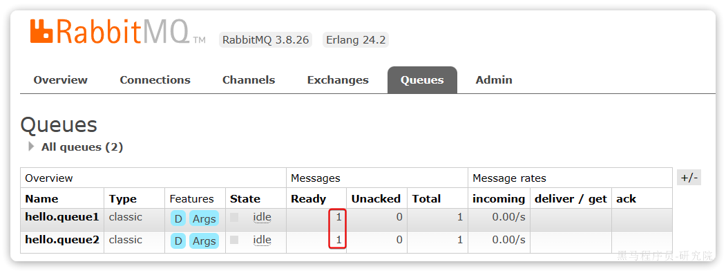 這個時候如果有消費(fèi)者監(jiān)聽了MQ的hello.queue1