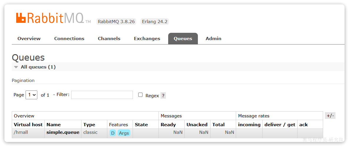 然后再次查看queues選項(xiàng)卡,會發(fā)現(xiàn)之前的隊(duì)列已經(jīng)看不到了: