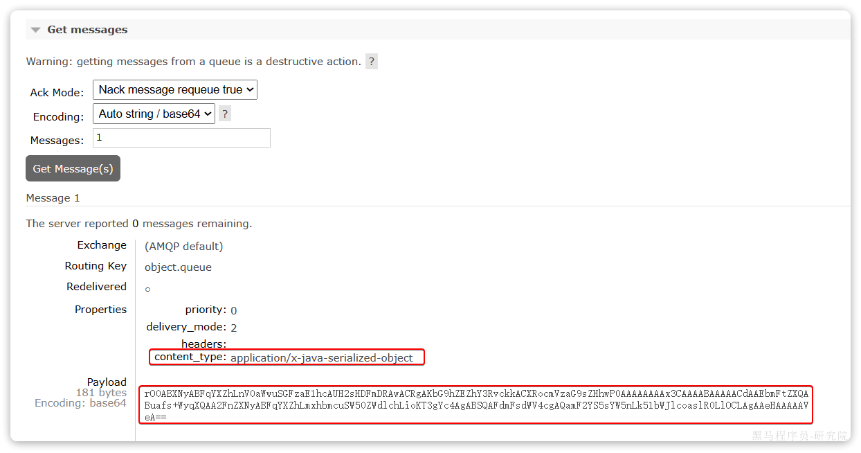 System.out.println("消費(fèi)者接收到object.queue消息:【" + msg + "】");