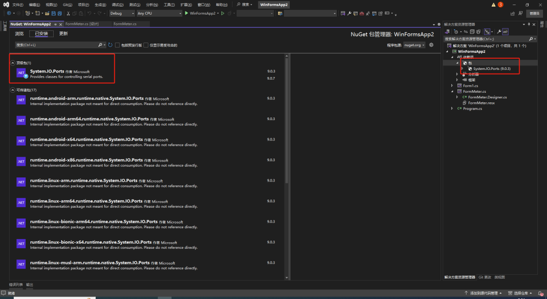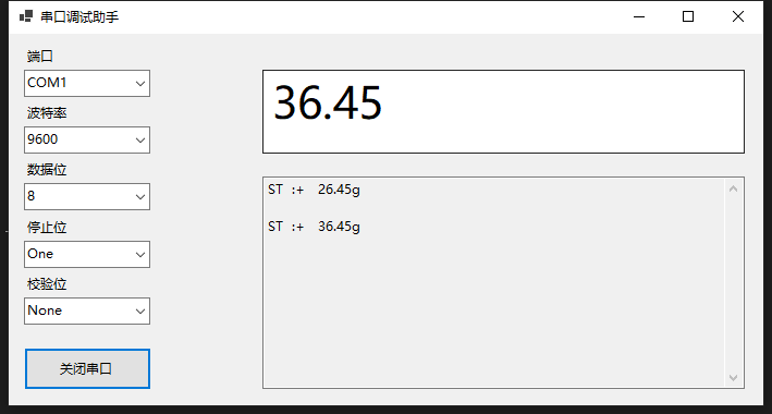 對接效果測試工具電子秤對接文檔二、VS2022界面設(shè)計安裝System.IO.Ports解析數(shù)據(jù)引用using System.IO.Ports;代碼namespace WinFormsApp2{ public partial class FormMeter : Form { private SerialPort serialPort = new SerialPort(); public FormMeter() { InitializeComponent(); InitializeSettings(); this.FormClosing += MainForm_FormClosing; } private void InitializeSettings() { // 初始化默認(rèn)值 cmbBaudRate.SelectedIndex = 0; cmbDataBits.SelectedIndex = 3; cmbStopBits.SelectedIndex = 0; cmbParity.SelectedIndex = 0; RefreshPortList(); } //刷新串口 private void RefreshPortList() { cmbPort.Items.Clear(); string[] ports = SerialPort.GetPortNames(); cmbPort.Items.AddRange(ports); if (ports.Length > 0) cmbPort.SelectedIndex = 0; } //打開串口 private void btnOpen_Click(object sender, EventArgs e) { if (!serialPort.IsOpen) { try { serialPort.PortName = cmbPort.Text; serialPort.BaudRate = int.Parse(cmbBaudRate.Text); serialPort.DataBits = int.Parse(cmbDataBits.Text); serialPort.StopBits = (StopBits)Enum.Parse(typeof(StopBits), cmbStopBits.Text); serialPort.Parity = (Parity)Enum.Parse(typeof(Parity), cmbParity.Text); serialPort.Open(); btnOpen.Text = "關(guān)閉串口"; serialPort.DataReceived += SerialPort_DataReceived; } catch (Exception ex) { MessageBox.Show($"打開失敗: {ex.Message}"); } } else { serialPort.Close(); btnOpen.Text = "打開串口"; } } //關(guān)閉串口 private void btnSend_Click(object sender, EventArgs e) { if (serialPort.IsOpen && !string.IsNullOrEmpty(txtSend.Text)) { try { serialPort.WriteLine(txtSend.Text); txtReceived.AppendText($"[發(fā)送] {DateTime.Now:HH:mm:ss}: {txtSend.Text}\r\n"); txtSend.Clear(); } catch (Exception ex) { MessageBox.Show($"發(fā)送失敗: {ex.Message}"); } } } //接收事件 private void SerialPort_DataReceived(object sender, SerialDataReceivedEventArgs e) { string data = serialPort.ReadExisting(); this.BeginInvoke(new Action(() => { txtReceived.AppendText($"{data}\r\n"); txtReceived.ScrollToCaret(); //解析數(shù)據(jù) int SignStart = data.IndexOf(":");//標(biāo)識位 if (SignStart < 0) return; int NumberStart = 5;//起始位 int NumberBits = 5;//截取長度 string dataPart = data.Substring(SignStart + NumberStart, NumberBits); // 數(shù)據(jù)段 txtSend.Invoke(new Action(() => { txtSend.Text = dataPart; })); })); } //關(guān)閉窗口 private void MainForm_FormClosing(object sender, FormClosingEventArgs e) { if (serialPort.IsOpen) serialPort.Close(); } }}
