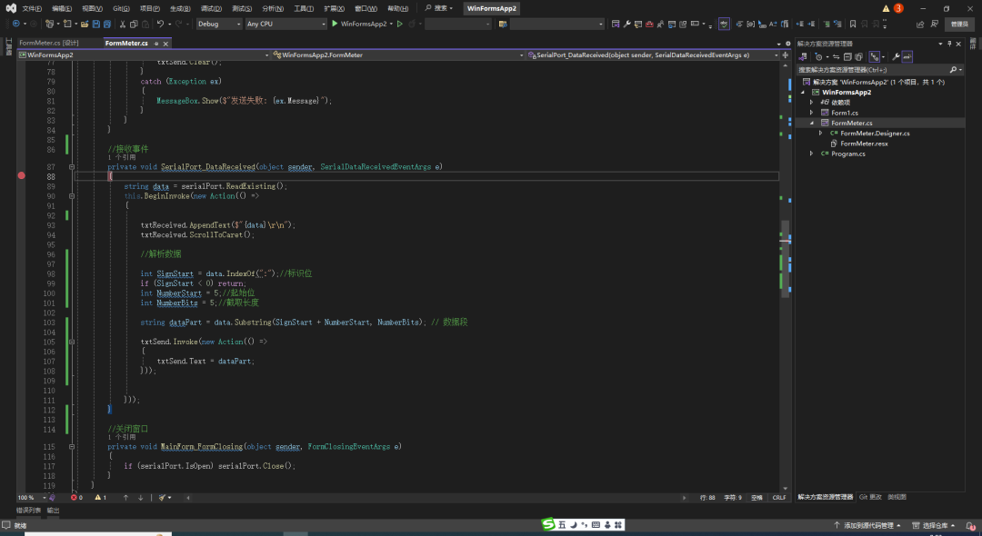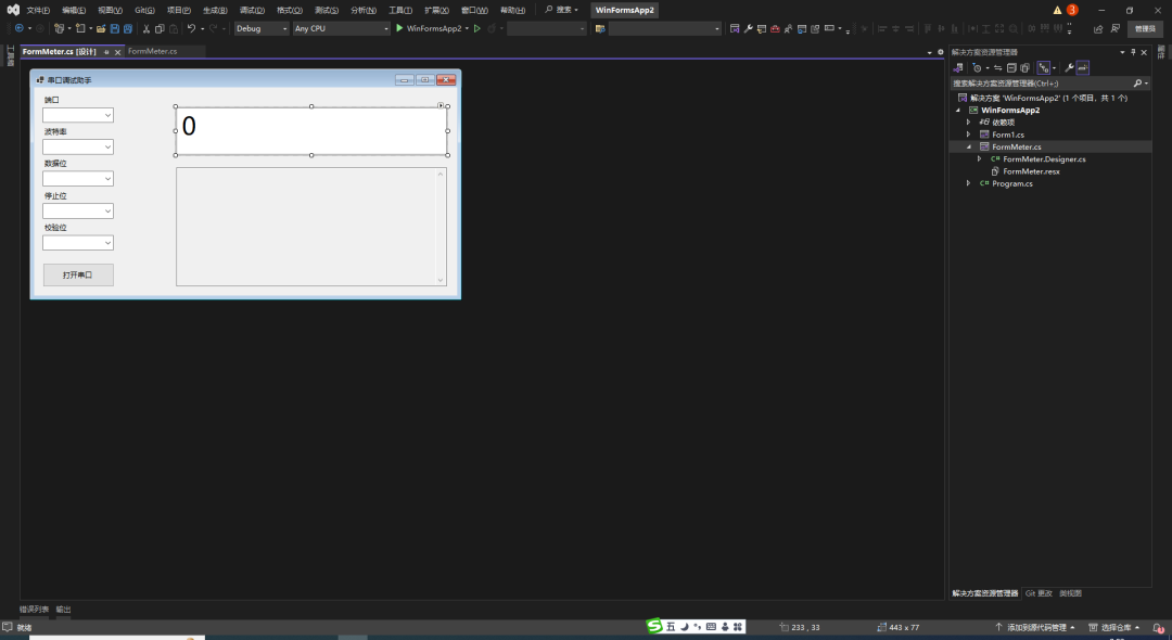 namespace WinFormsApp2{ public partial class FormMeter : Form { private SerialPort serialPort = new SerialPort(); public FormMeter() { InitializeComponent(); InitializeSettings(); this.FormClosing += MainForm_FormClosing; } private void InitializeSettings() { // 初始化默認(rèn)值 cmbBaudRate.SelectedIndex = 0; cmbDataBits.SelectedIndex = 3; cmbStopBits.SelectedIndex = 0; cmbParity.SelectedIndex = 0; RefreshPortList(); } //刷新串口 private void RefreshPortList() { cmbPort.Items.Clear(); string[] ports = SerialPort.GetPortNames(); cmbPort.Items.AddRange(ports); if (ports.Length > 0) cmbPort.SelectedIndex = 0; } //打開串口 private void btnOpen_Click(object sender, EventArgs e) { if (!serialPort.IsOpen) { try { serialPort.PortName = cmbPort.Text; serialPort.BaudRate = int.Parse(cmbBaudRate.Text); serialPort.DataBits = int.Parse(cmbDataBits.Text); serialPort.StopBits = (StopBits)Enum.Parse(typeof(StopBits), cmbStopBits.Text); serialPort.Parity = (Parity)Enum.Parse(typeof(Parity), cmbParity.Text); serialPort.Open(); btnOpen.Text = "關(guān)閉串口"; serialPort.DataReceived += SerialPort_DataReceived; } catch (Exception ex) { MessageBox.Show($"打開失敗: {ex.Message}"); } } else { serialPort.Close(); btnOpen.Text = "打開串口"; } } //關(guān)閉串口 private void btnSend_Click(object sender, EventArgs e) { if (serialPort.IsOpen && !string.IsNullOrEmpty(txtSend.Text)) { try { serialPort.WriteLine(txtSend.Text); txtReceived.AppendText($"[發(fā)送] {DateTime.Now:HH:mm:ss}: {txtSend.Text}\r\n"); txtSend.Clear(); } catch (Exception ex) { MessageBox.Show($"發(fā)送失敗: {ex.Message}"); } } } //接收事件 private void SerialPort_DataReceived(object sender, SerialDataReceivedEventArgs e) { string data = serialPort.ReadExisting(); this.BeginInvoke(new Action(() => { txtReceived.AppendText($"{data}\r\n"); txtReceived.ScrollToCaret(); //解析數(shù)據(jù) int SignStart = data.IndexOf(":");//標(biāo)識位 if (SignStart < 0) return; int NumberStart = 5;//起始位 int NumberBits = 5;//截取長度 string dataPart = data.Substring(SignStart + NumberStart, NumberBits); // 數(shù)據(jù)段 txtSend.Invoke(new Action(() => { txtSend.Text = dataPart; })); })); } //關(guān)閉窗口 private void MainForm_FormClosing(object sender, FormClosingEventArgs e) { if (serialPort.IsOpen) serialPort.Close(); } }}