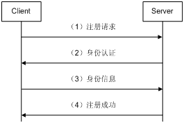 如圖 3所示,連接初始化的過程為: (1) Client通過連接請求報文將自s己支持的完整性驗證算法、加密算法等發(fā)送給Server。 (2) Server按照優(yōu)先級從高到低的順序從自己支持的算法列表中依次選擇算法,與Client發(fā)送的算法列表進行匹配。如果匹配成功,則使用該算法,Server通過連接響應(yīng)報文將算法協(xié)商結(jié)果發(fā)送給Client,同時,Server和Client生成加密密鑰和完整性驗證密鑰。 (3) Client和Server分別利用初始化完成報文驗證算法和密鑰協(xié)商是否成功。 2. 注冊階段圖 4 注冊流程圖