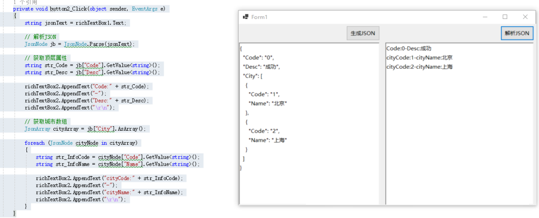 解析JSON數(shù)據(jù)并提取信息顯示在另一個RichTextBox中