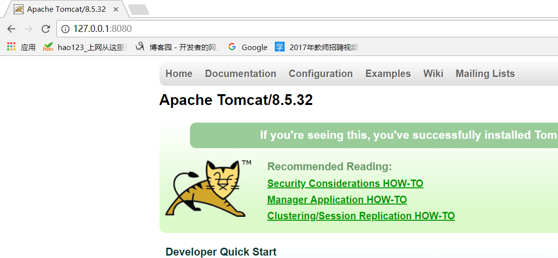 理解這兩種代理的關鍵在于代理服務器所代理的對象是什么,正向代理代理的是客戶端,我們需要在客戶端進行一些代理的設置。而反向代理代理的是服務器,作為客戶端的我們是無法感知到服務器的真實存在的。 總結起來還是一句話:正向代理代理客戶端,反向代理代理服務器。 4、Nginx 反向代理范例:使用 nginx 反向代理 www.123.com 直接跳轉到127.0.0.1:8080 ①、啟動一個 tomcat,瀏覽器地址欄輸入 127.0.0.1:8080,出現(xiàn)如下界面