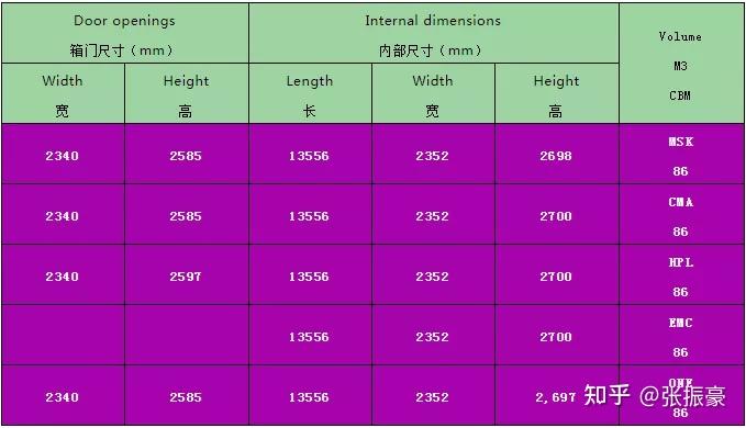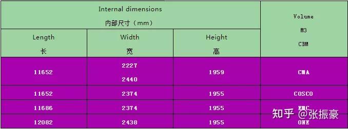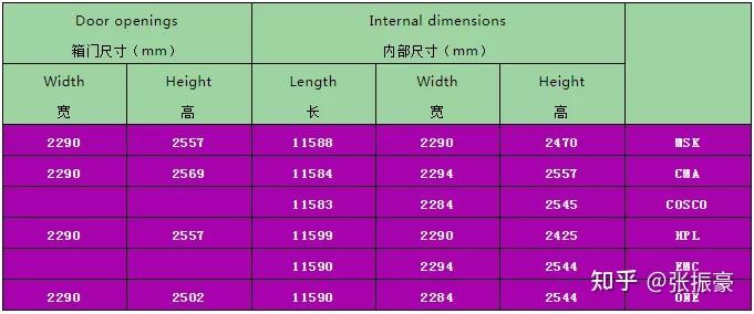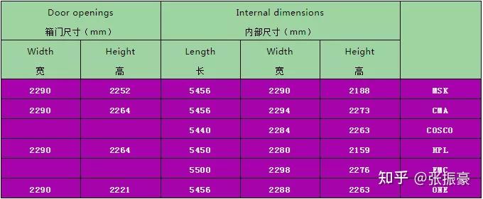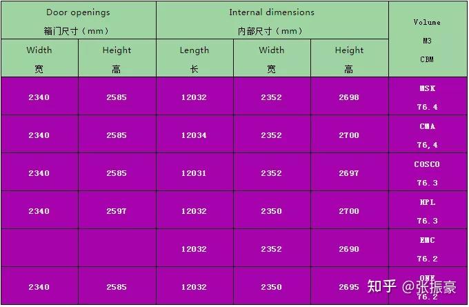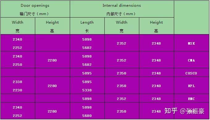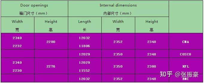 怎么計算裝貨量,裝什么箱型,離不開最基本的一個數(shù)據(jù),那就是集裝箱的尺寸。 談到集裝箱尺寸,我們熟知小箱長度大概5.9米,自然而然很多人會以為大箱長度就是11.8米。 其實這種意識的長度是不準(zhǔn)確的,大箱長度也不是小箱長度乘以2,那么集裝箱尺寸到底是多少呢? 下面我們來詳細(xì)說明。 關(guān)于集裝箱尺寸,包含三個部分:外部尺寸、內(nèi)部尺寸、箱門尺寸。 外部尺寸我們這里不做介紹,只要知道內(nèi)部尺寸和箱門尺寸,我們用著就會得心應(yīng)手! 干貨箱(Dry Cargo) 1、20英尺普箱,表示為:20GP/20FCL/20SD/20DV/20DC/20DRY8.6 2、20英尺高箱,表示為:20HQ/20HC 3、40英尺普箱,表示為:40GP/40FCL/40SD/40DV/40DC/40DRY8.6 4、40英尺高箱,表示為:40HQ/40HC/40DRY9.6 5、45英尺高箱,表示為:45HQ/45HC 冷藏箱(Refrigerated Cargo) 1、20英尺冷箱,表示為:20RF 2、40英尺高冷箱,表示為:40RH 開頂箱(Open Top) 1、20英尺開頂箱,表示為20OT 2、40英尺開頂箱,表示為40OT 3、40英尺高開頂箱,表示為40OH 框架箱(Flat Rack) 1、20英尺框架箱,表示為20FR/20FL 2、40英尺框架箱,表示為40FR/40FL 3、40英尺高框架箱,表示為40FR High 該文章在 2025/8/9 13:20:03 編輯過 |