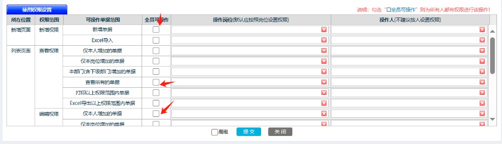 在頁(yè)面設(shè)計(jì)最下方,有用戶(hù)權(quán)限分配的勾選項(xiàng),一般新增,查看權(quán)限為所有人的,其他都是 本人的單據(jù)才允許操作 如下圖: ![]() 點(diǎn)晴模切ERP更多信息:http://moqie.clicksun.cn,聯(lián)系電話(huà):4001861886 該文章在 2025/8/13 10:35:46 編輯過(guò) |