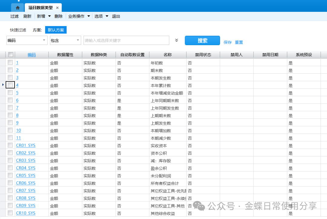 3.2項目數(shù)據(jù)類型【業(yè)務(wù)場景】:對于報表中的同一報表項目可能需要區(qū)分多種數(shù)據(jù)類型,因此系統(tǒng)提供“項目數(shù)據(jù)類型”功能,供用戶自定義報表項目的數(shù)據(jù)類型,從多個角度反映某個報表項目的情況。 【用戶角色】:財務(wù)經(jīng)理 【功能菜單】:【財務(wù)會計】->【報表】->【基礎(chǔ)資料】->【項目數(shù)據(jù)類型】 【操作說明】:用戶根據(jù)需要使用項目數(shù)據(jù)類型來標(biāo)識報表的行或列,方便取數(shù)公式選擇正確的取數(shù)類型。