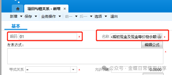 3.4項目勾稽關(guān)系【業(yè)務(wù)場景】:報表項目勾稽關(guān)系是通過設(shè)置報表項目間的比較公式,來核對報表項目數(shù)據(jù)的正確性。 【用戶角色】:財務(wù)經(jīng)理 【功能菜單】:【財務(wù)會計】->【報表】->【基礎(chǔ)資料】->【項目勾稽關(guān)系】 【操作說明】:新建項目勾稽關(guān)系,維護(hù)編碼及名稱;