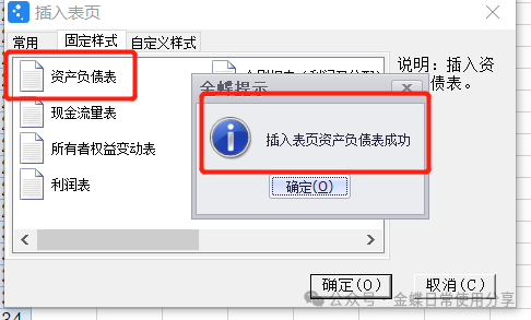 2.編輯報表模板:報表模板的表頁有兩種編輯方式:直接插入系統(tǒng)預(yù)置的表頁或者采用批量填充模板樣式方案; (1)插入系統(tǒng)預(yù)置表頁:鼠標(biāo)右鍵點擊表頁標(biāo)簽(表頁標(biāo)簽如:sheet1),選擇【插入表頁】,在彈出的“插入表頁”對話框的【報表樣式】頁簽中,選擇需要插入的報表樣式(如資產(chǎn)負(fù)債表),點擊【確定】按鈕,系統(tǒng)會顯示“插入表頁XX報表成功”;