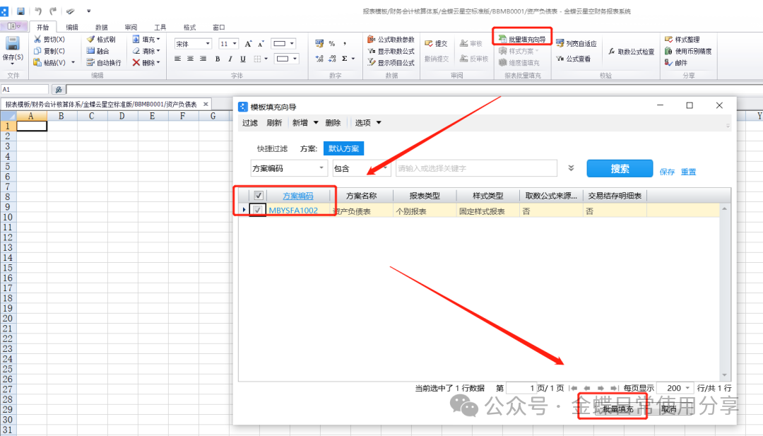 (2)批量填充模板樣式方案:點擊【批量填充向?qū)А浚趶棾龅哪0逄畛湎驅(qū)υ捒蛑羞x擇需要填充的模板樣式方案,選擇完成后點擊【批量填充】;