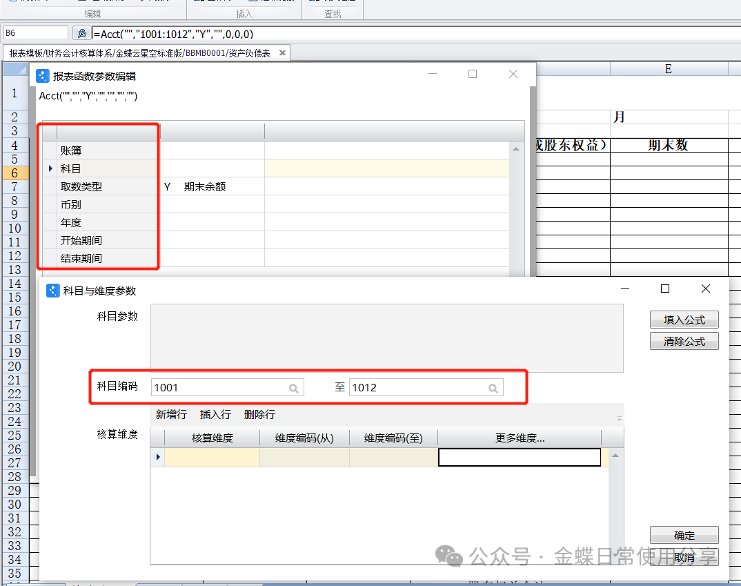 (2)在報表函數(shù)參數(shù)編輯對話框中維護(hù)科目、取數(shù)類型、幣別、年度、開始期間以及結(jié)束期間等信息;