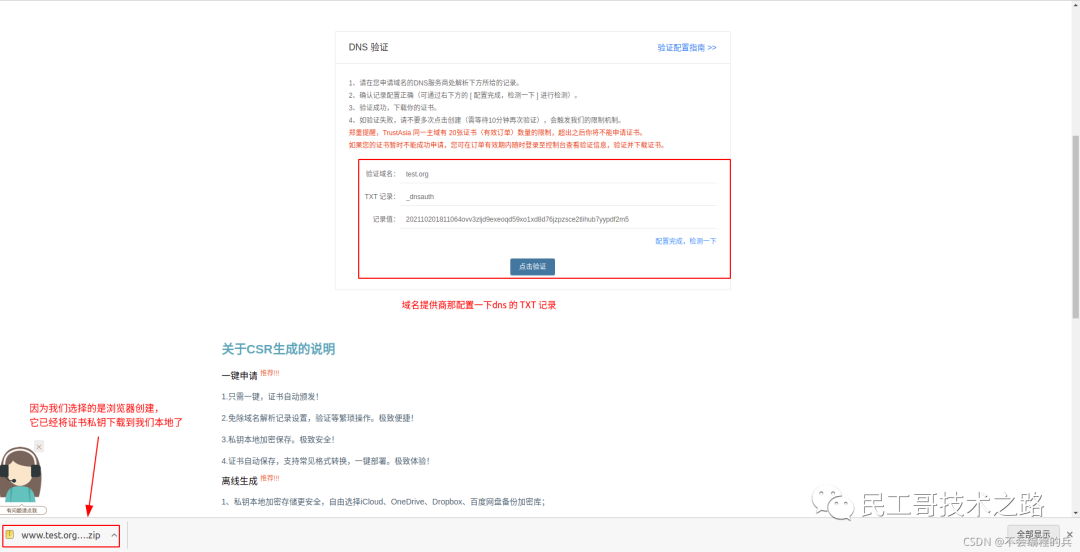點(diǎn)擊創(chuàng)建證書 點(diǎn)擊證書申請(qǐng) 域名提供商(云平臺(tái)DNS解析)處配置TXT記錄值 提交審核 等待證書申請(qǐng) 等待CA中心審核您的證書申請(qǐng),并在審核通過后為您簽發(fā)證書。DV證書一般會(huì)在2個(gè)小時(shí)內(nèi)完成審核和簽發(fā)。您可以在證書列表中查看證書的狀態(tài)。證書簽發(fā)后,證書狀態(tài)將更新為已簽發(fā)。 部署到服務(wù)器(例子:nginx)阿里云提供SSL證書安裝文檔:https://help.aliyun.com/document_detail/109827.htm?spm=a2c4g.11186623.0.0.1d983103a2FKwt#section-ri1-ayr-evy