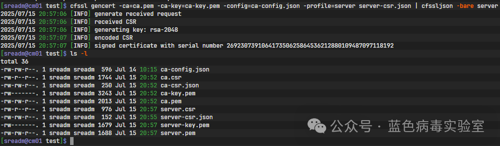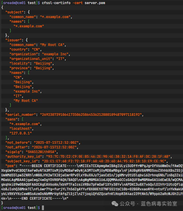 我們可以使用cfssl-certinfo工具來查看生成的證書信息.cfssl-certinfo -cert server.pem