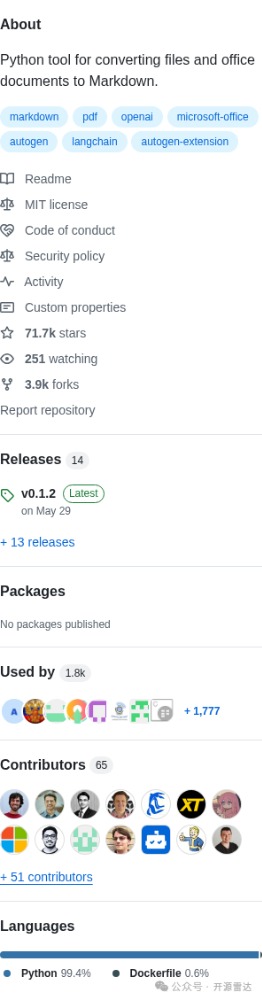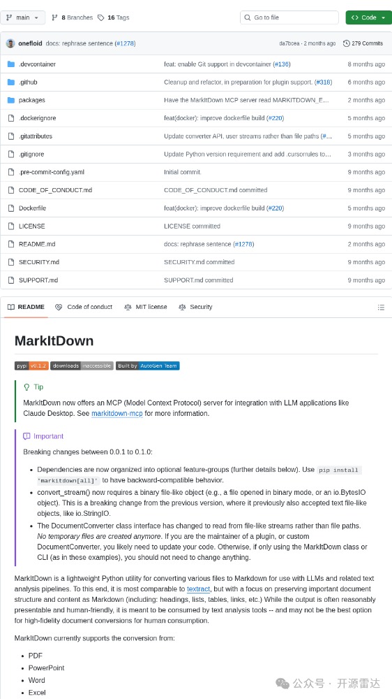 微軟出品的MarkItDown,直接把各種文件格式秒變Markdown!? 亮點速覽:? 支持PDF、Word、Excel、PPT、圖片、音頻、YouTube視頻…全都能轉!? 輸出結構清晰,保留標題、列表、表格等重要信息,LLM友好度拉滿!? 還能對接Azure Document Intelligence,專業(yè)級文檔識別!?? 目前已獲71.7k星標+3.9k fork,微軟官方團隊維護,穩(wěn)定又強大!