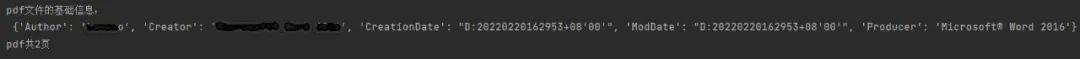 (2)pdfplumber讀取pdf文件方式 pdfplumber.open(‘文件路徑’),返回pdfplumber.PDF類的實例。 如果pdf有密碼,加入password參數(shù): pdfplumber.open(‘文件路徑’,password=‘密碼’) 2、獲取pdf基礎(chǔ)信息 讀取pdf文件,并輸出pdf文件的基礎(chǔ)信息