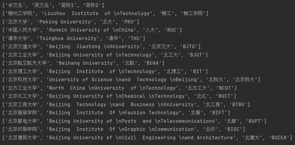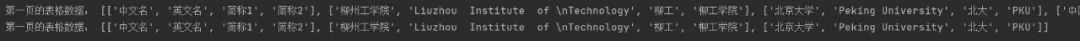 (2)、extact_table()方法 不會返回文檔的所有表格,僅返回行數(shù)最多的表格數(shù)據(jù),如存在多個行數(shù)相等的表格,則默認輸出頂部表格數(shù)據(jù)。返回的數(shù)據(jù)結(jié)構(gòu)層次為row-cell,表格的每一行都為一個單獨的列表,列表中的元素即為原表格的各個單元格的數(shù)據(jù)。如: