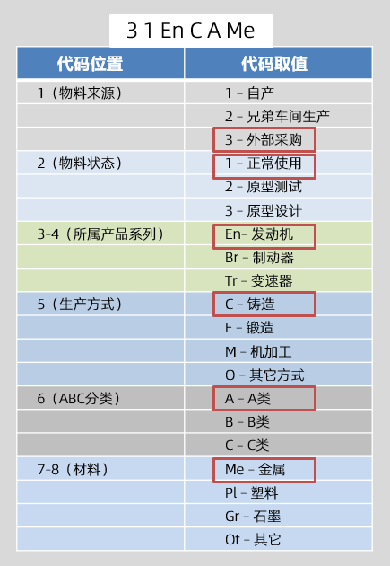 因?yàn)槠邢蓿視?huì)撿一些重點(diǎn)來聊聊。 *** 對(duì)于物料編碼問題,主要有四類,就是一物多碼、一碼多物、有物無碼和有碼無物。只要存在這四類問題的任何一類,給企業(yè)帶來的主要危害,要么是庫存積壓,要么是生產(chǎn)缺料,還有就是會(huì)浪費(fèi)大家的時(shí)間。 常用的物料編碼方法,主要有三種,就是有意義編碼法、半意義編碼法和無意義編碼法。 所謂有意義編碼法,就是編碼里面的每一位數(shù)字或者字母,都是有意義的,比如可以用這些數(shù)字或者字母,來代表物料的長度、寬度、高度、直徑、重量、體積、材質(zhì)、顏色、生產(chǎn)方式、圖號(hào)、供應(yīng)商等等。