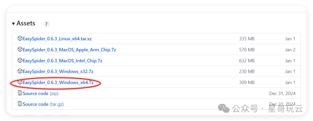 下載安裝進(jìn)入 Releases Page 下載最新版本。如果下載速度慢,可以考慮中國(guó)境內(nèi)下載地址:中國(guó)境內(nèi)下載地址。 我這里下載EasySpider_0.6.3_Windows_x64.7z 作為演示。