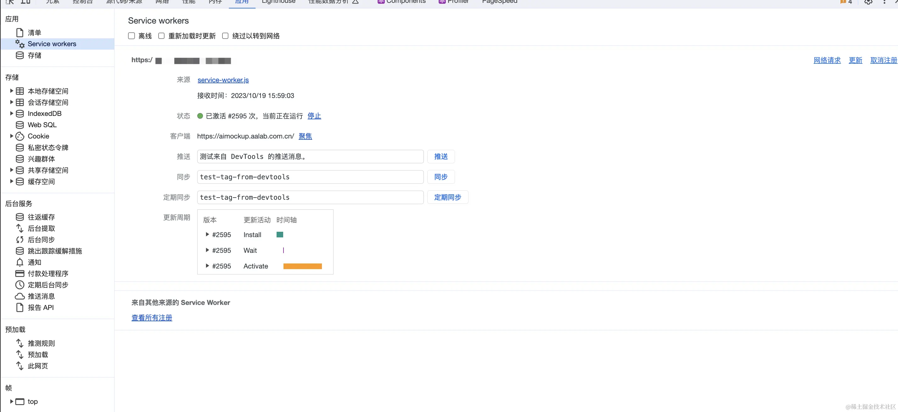器調(diào)試中心,在Application欄下,就能看到Service Woerkers,如圖: