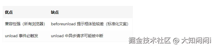方法二:beforeunload 與 unload 事件 —— 傳統(tǒng)的頁(yè)面卸載監(jiān)聽
