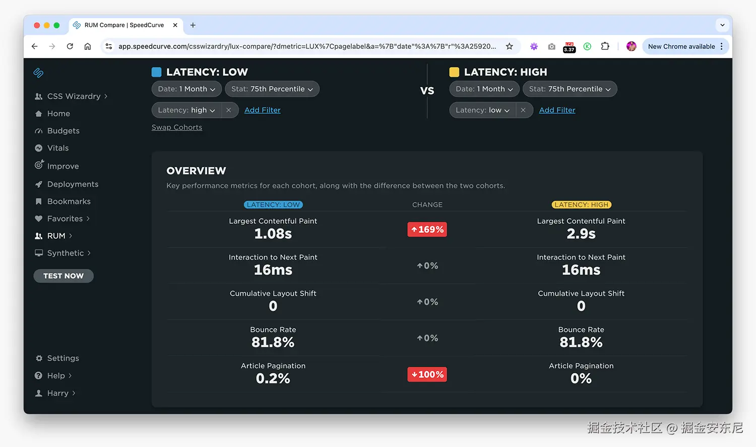 我會把所有數(shù)據(jù)都發(fā)送給我在 SpeedCurve 的朋友們。有了這些數(shù)據(jù),我就能開始對 RUM(真實用戶監(jiān)控)數(shù)據(jù)進行細分,并制定針對不同用戶群體的服務策略。