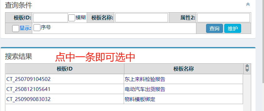 選擇完物料后再選擇模板 如下圖: