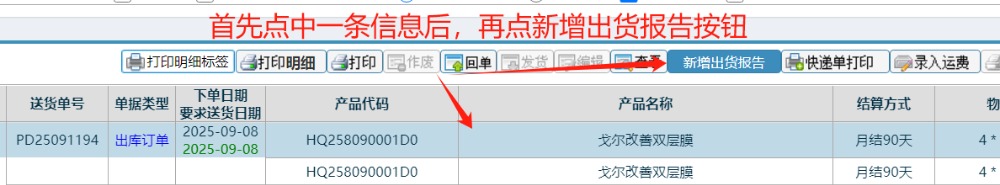 點晴模切ERP-送貨單明細界面跳轉(zhuǎn)到新增出貨報告界面-操作教程