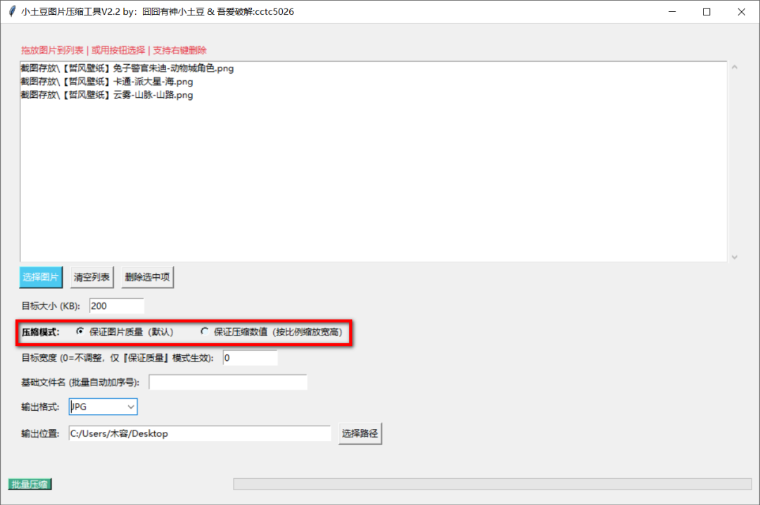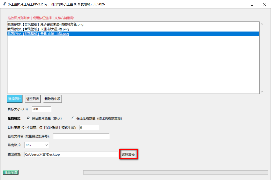 如果經(jīng)常需要壓縮圖片,那擁有一款好用的圖片壓縮工具是很有必要的,網(wǎng)上有很多圖片壓縮工具可以選擇,剛好小七最近逛論壇時(shí)又發(fā)現(xiàn)了一款,趕緊來(lái)分享給你們使用,實(shí)測(cè)很不錯(cuò)。 小土豆圖片壓縮工具(電腦) 軟件由吾愛(ài)大佬原創(chuàng),采用python編寫(xiě),完全免費(fèi),單文件免安裝,最大的特點(diǎn)就是支持將圖片壓縮到指定大小,支持批量壓縮,支持拖入添加文件。