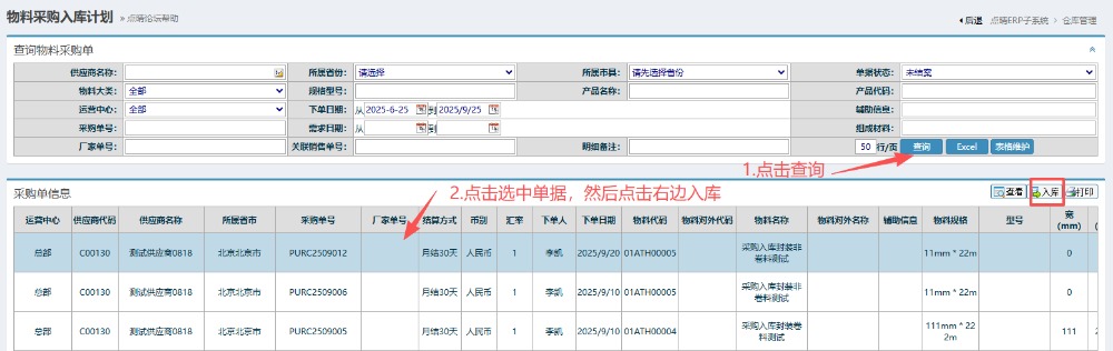 點(diǎn)晴模切ERP-采購入庫計(jì)劃操作流程