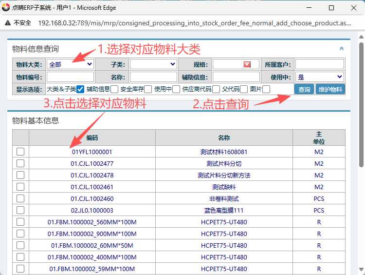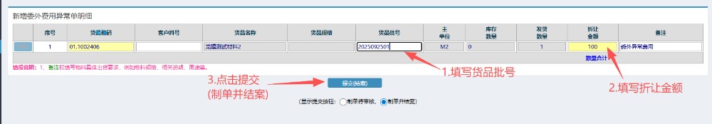 2.進(jìn)入界面后,選擇對(duì)應(yīng)供應(yīng)商以及費(fèi)用類型。 3.來(lái)到下方選擇“物料編碼”,點(diǎn)擊后會(huì)彈出物料信息窗口。 在彈窗物料信息界面內(nèi),按圖操作:選擇對(duì)應(yīng)物料大類,點(diǎn)擊查詢。然后點(diǎn)擊選擇對(duì)應(yīng)物料。 4.選好物料后,按圖操作:填寫貨品批號(hào)以及折讓金額,最后點(diǎn)擊提交(制單并結(jié)案)。 5.提交后,返回到左側(cè)功能菜單里找到“維護(hù)委外異常費(fèi)用單”進(jìn)入。 6.進(jìn)入界面后,點(diǎn)擊查詢。如果找不到可以調(diào)整日期或者根據(jù)異常費(fèi)用單號(hào)查詢。 可以確認(rèn)當(dāng)前單據(jù)狀態(tài)為“已結(jié)案”。 ? 點(diǎn)晴模切ERP更多信息:http://moqie.clicksun.cn,聯(lián)系電話:4001861886 該文章在 2025/9/25 17:46:56 編輯過(guò) |