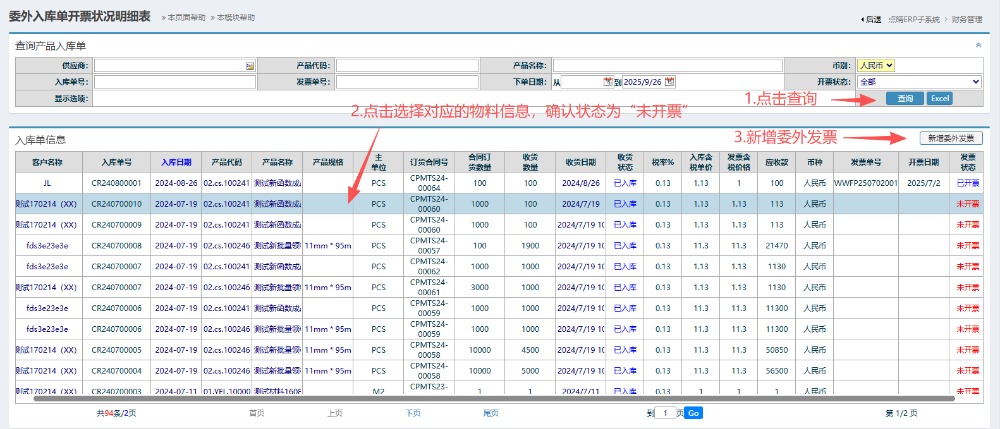 點(diǎn)晴模切ERP-委外入庫開票查詢-操作流程