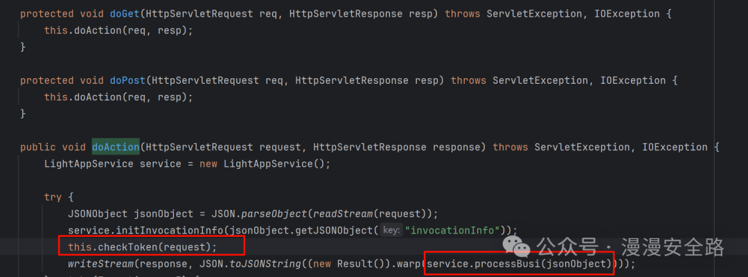 我這個代碼是修復(fù)了這個漏洞以后的加了包名限制。這里其實(shí)和我們上面反射調(diào)用方法是一樣的只不過這里是json