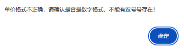 點晴模切ERP-彈出提示:單價格式不正確,請確認是否是數(shù)字格式,不能有逗號號存在!