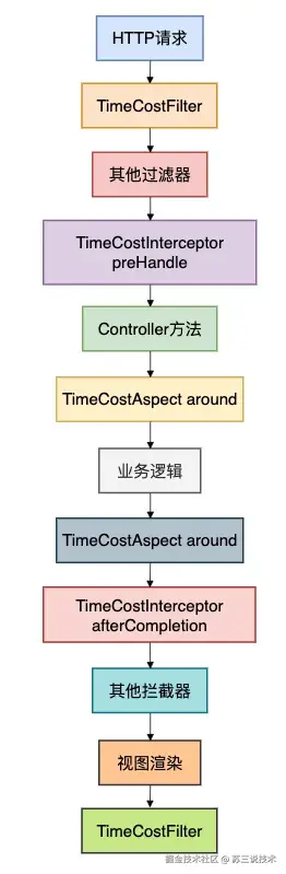 • 注意:afterCompletion即使請(qǐng)求拋出異常也會(huì)調(diào)用,這確保了耗時(shí)統(tǒng)計(jì)的完整性。