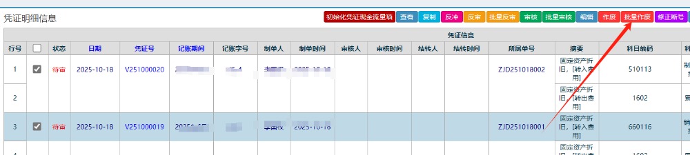 勾選上要作廢的憑證,再點(diǎn)擊批量作廢按鈕