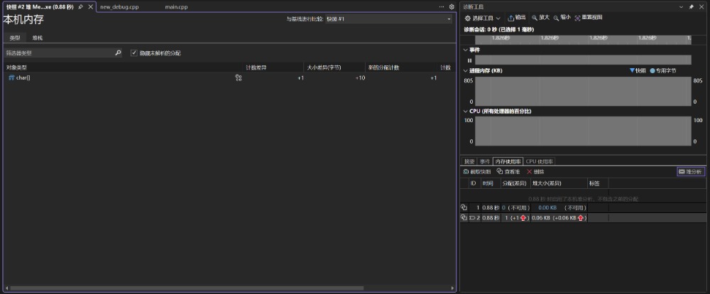 期望趕快找到是哪里程序的內(nèi)存分配行為錯誤了。這個時候Diagnostic Tools就顯得十分的重要的了。