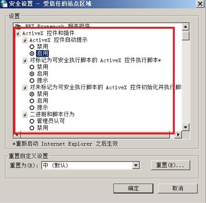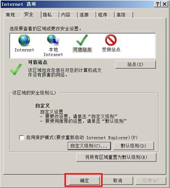 ![]() 處理方法: (1)打開打開點(diǎn)晴MIS系統(tǒng)登陸頁,復(fù)制頁面地址: ![]() ?。?)打開IE [工具]--- [Internet 選項(xiàng)] ![]() 注意:不同版本IE選項(xiàng)的位置可能不同。建議使用微軟IE瀏覽器。 ?。?)進(jìn)入[安全]選項(xiàng) ![]() 操作:依次選擇【安全】---【可信站點(diǎn)】--【站點(diǎn)】。確?!皩?duì)該區(qū)域中所有xxxxx”中的鉤選項(xiàng)為空。 ?。?)將點(diǎn)晴MIS系統(tǒng)網(wǎng)站添加至可信站點(diǎn) ![]() 操作:將(1)中復(fù)制的頁面地址,粘貼至此處(IE可能會(huì)自動(dòng)跳出地址)點(diǎn)【添加】按鈕后,【關(guān)閉】--【確認(rèn)】上述操作。 注意:如發(fā)現(xiàn)列表中已經(jīng)包含該網(wǎng)站地址,可以使用刪除后重新添加的方式。該列表中出現(xiàn)站點(diǎn),將對(duì)其采取不同設(shè)置方式,請(qǐng)確保列表中站點(diǎn)地址是否為合法安全網(wǎng)站。完成這個(gè)步驟后,頁面右下角,將變成“可信站點(diǎn)”字樣,如下圖。 ![]() ?。?)調(diào)整IE對(duì)于“受信任站點(diǎn)”區(qū)域的安全設(shè)置 ![]() 操作:重復(fù)(2)進(jìn)入INTERNET選項(xiàng)。依次選擇【安全】【可信站點(diǎn)】【自定義級(jí)別】 ?。?) 配置受信任站點(diǎn)區(qū)域安全設(shè)置 ![]() 操作:【ACTIVEX 控件和插件】組,建議全部設(shè)置為“啟用”或“提示”狀態(tài)?!酒渌坎糠?,除了“使用彈出窗口阻止程序”以外,也建議全部啟用。 注意:“將文件上載到服務(wù)器時(shí)包含本地目錄路徑”、“通過域訪問數(shù)據(jù)資源”和“跨域?yàn)g覽子框架”項(xiàng),應(yīng)確認(rèn)為“啟用”狀態(tài),該選項(xiàng)可能會(huì)因?yàn)槟撤N原因變更回默認(rèn)的“禁用”。 ![]() ![]() ?。?)確定設(shè)置改動(dòng) ![]() 然后對(duì)前面的兩項(xiàng)“Internet”和“本地Intranet”都要點(diǎn)擊“自定義級(jí)別…”,重復(fù)執(zhí)行以上的設(shè)置,確?!癐nternet”、“本地Intranet”、“可信站點(diǎn)”三項(xiàng)的配置都開放了以上參數(shù):