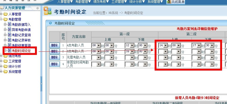 你可以通過(guò)更改考勤類型中的允許考勤前后時(shí)間來(lái)看效果的,默認(rèn)是可以提前1個(gè)小時(shí)、延遲半個(gè)小時(shí)考勤的
