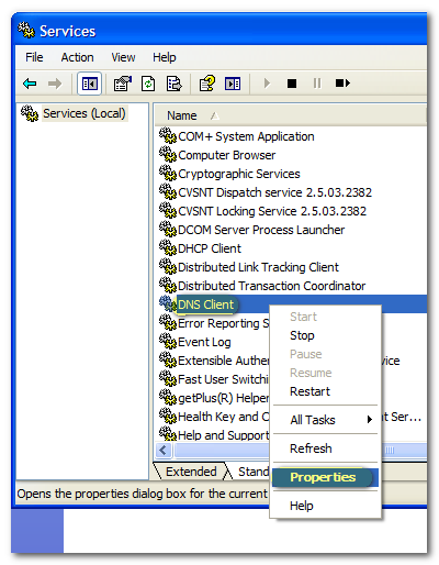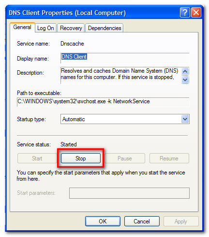 圖二 不過,很多時(shí)候還是無法完成清除DNS緩存,那么,怎樣才能有效清除DNS緩存呢? 在計(jì)算機(jī)中有一個(gè)Dnscache服務(wù)來為此計(jì)算機(jī)解析和緩沖域名系統(tǒng)(DNS)名稱。我們可以通過控制面板 - 管理工具 - 服務(wù),找到 DNS Client,雙擊打開它的屬性,直接停止它,如圖三、圖四,這時(shí)你Ping一下解析的域名是否正確了呢?再啟動(dòng)DNS Client服務(wù)即可。
