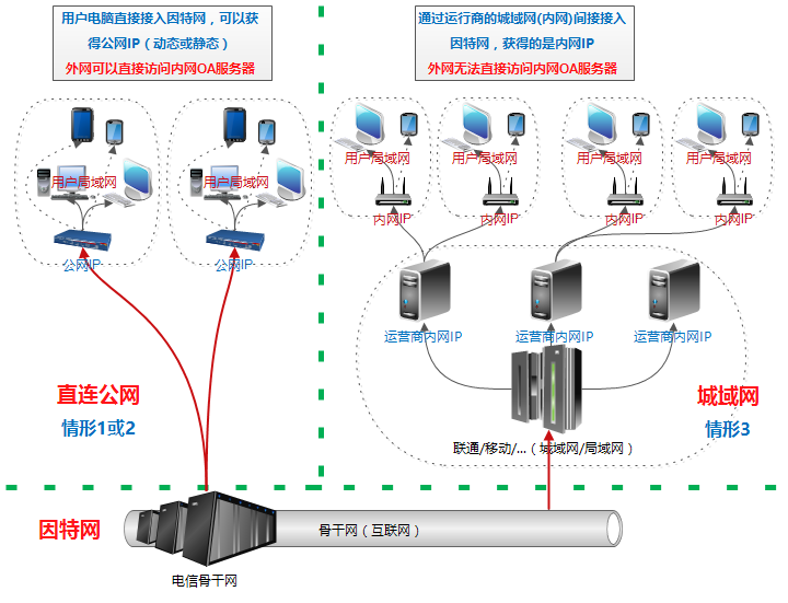 如果局域網(wǎng)內(nèi)的點(diǎn)晴OA服務(wù)器能夠訪問到外部因特網(wǎng),那么用戶單位所在的網(wǎng)絡(luò)環(huán)境肯定是以下三種之一: