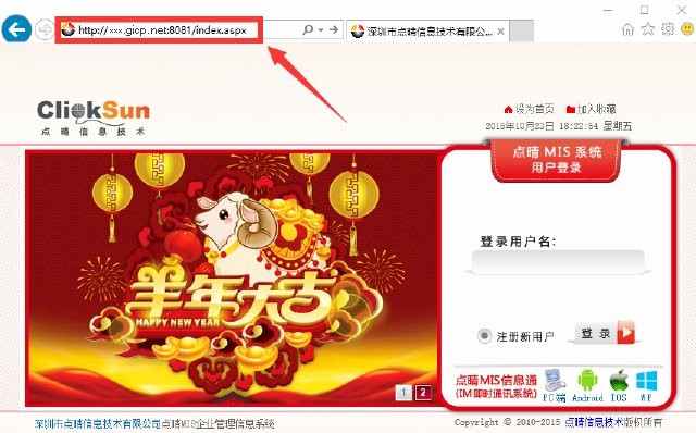 至此,就可以直接使用:http://外網(wǎng)固定IP:端口 的方式順利訪問內(nèi)網(wǎng)的點(diǎn)晴OA服務(wù)器了。